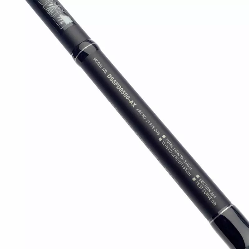 - DSSPD0500-AX – Length 10ft – Weight 315g – T/Curve 5.00lb – Max C/Weight 14oz – Closed Length 158cm