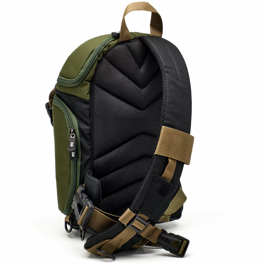 - Mobile anglers will enjoy the portability of this backpack! Useful when wading down rivers when you can utilise the shoulder strap that rotates around so you can easily locate the accessible main pocket. The 90° zip helps navigate inside, as this extends around to make retrieving larger items easy, especially when you’re holding your rod!