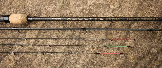 Drennan Acolyte Ultra Feeder 12ft, featuring a slim blank but maintaining enough backbone to cast long distances with greater accuracy. It also has a great parabolic fish-playing action to cushion fish of all sizes, from roach and skimmers to F1s and small carp. The extra length of this model will be particularly favoured by bream anglers on stillwaters. It will also enable river anglers to keep the rod nice and high to reduce the amount of line affected by the flow. Three super-slim, push-in carbon tips of 2oz, 2.5oz and 3oz are supplied. Each has been designed to taper perfectly with the blank and will also interchange between the entire family if required. Being a two-piece rod ensures that it can be easily folded in half for ease of transportation in a Rod Case or Sleeve.