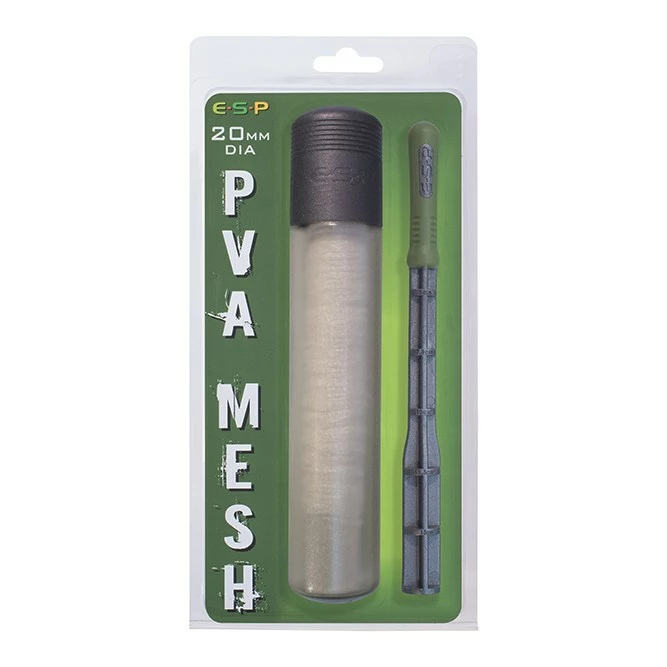 ESP 20mm PVA Mesh Kits, ideal for producing Dynamite Sticks and bags and including a Plunger. ESP PVA is produced in their own UK factory offering next level quality and control over the finished product. The bait tube itself has a slightly flared top to make filling easier and is moulded in a tough, durable polymer. The Plunger has a rubberised handle for comfort and is graded in 25mm divisions to help produce uniform size packages and sticks up to 15cm (6″) in length.