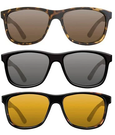 - Three different models combine to form this fantastic mini-range. First with a matt tortoise-shell frame and brown lense that will truly stand out amongst the rest. Secondly, with a matt black frame and grey lens, these will keep you looking sleek and cool when out in the sun. And finally with demi tortoise-shell frames and a yellow lens that will provide that extra help in blocking the sun rays with the orange/yellow tint. This timeless style is uber-cool!
