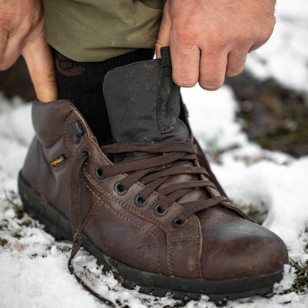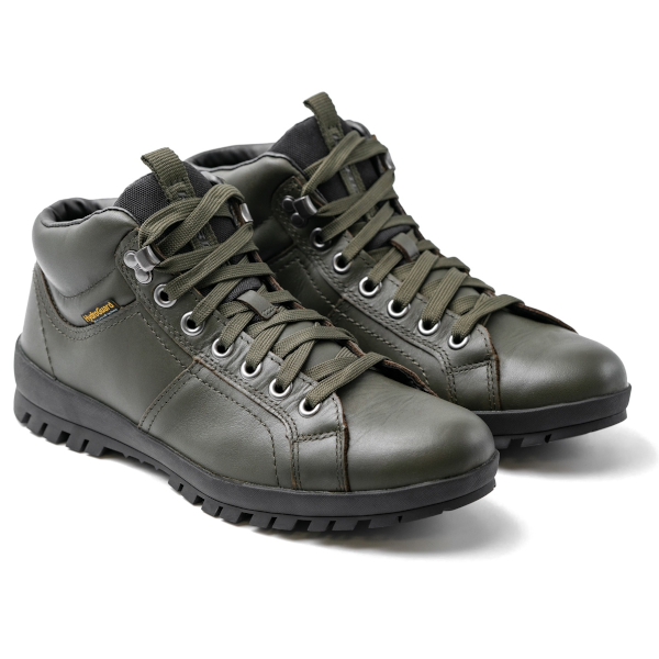 High quality hardwearing waterproof footwear with a high ankle giving you that extra level of protection. With a solid moulded one piece sole double stitched to the leather upper. Available in a choice of both brown, or green colour schemes. They feature a polyurethane membrane which allows water vapour out, but stops any rainwater getting in. Keeping your feet dry and comfortable in all conditions. Â Â