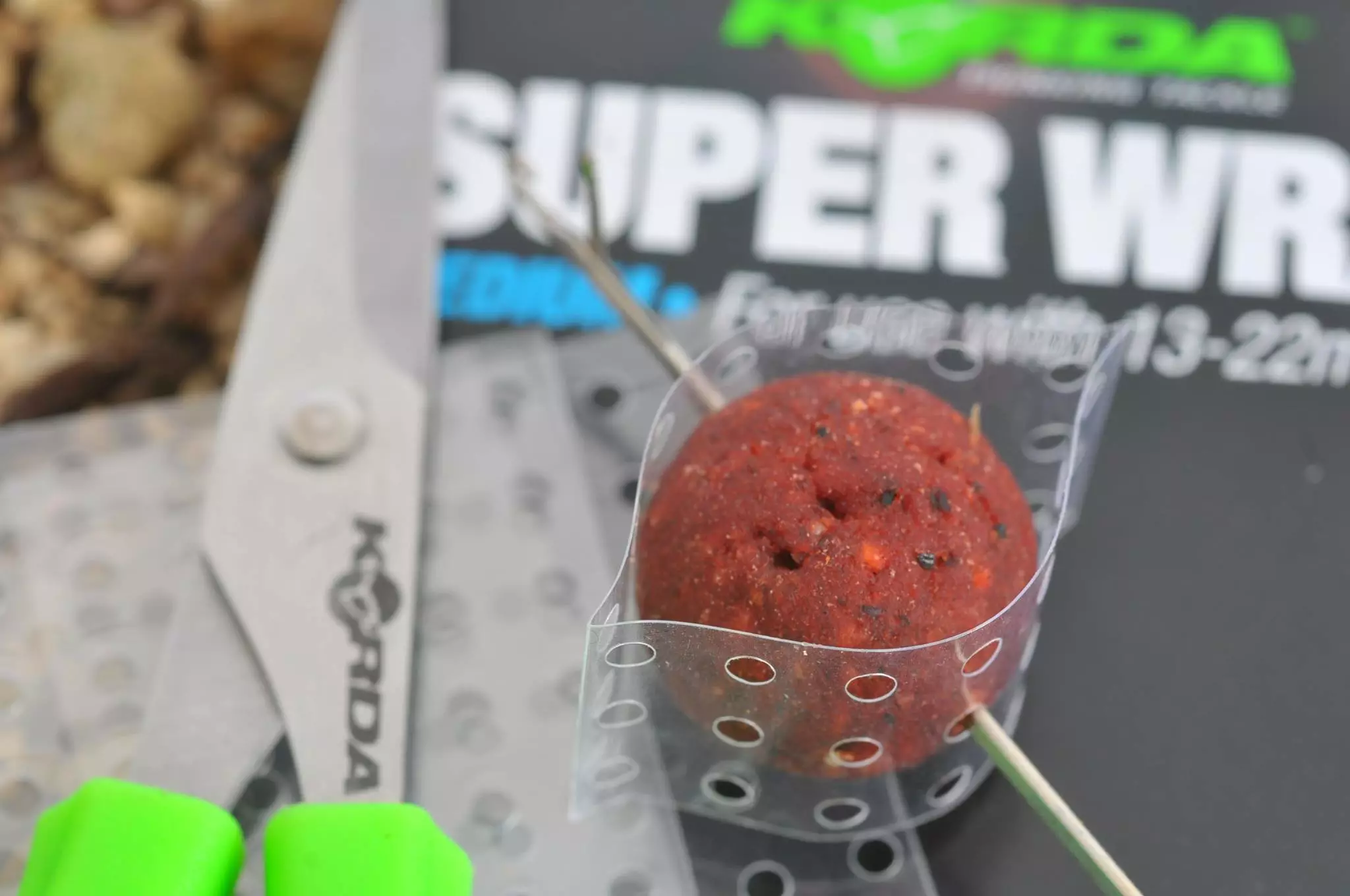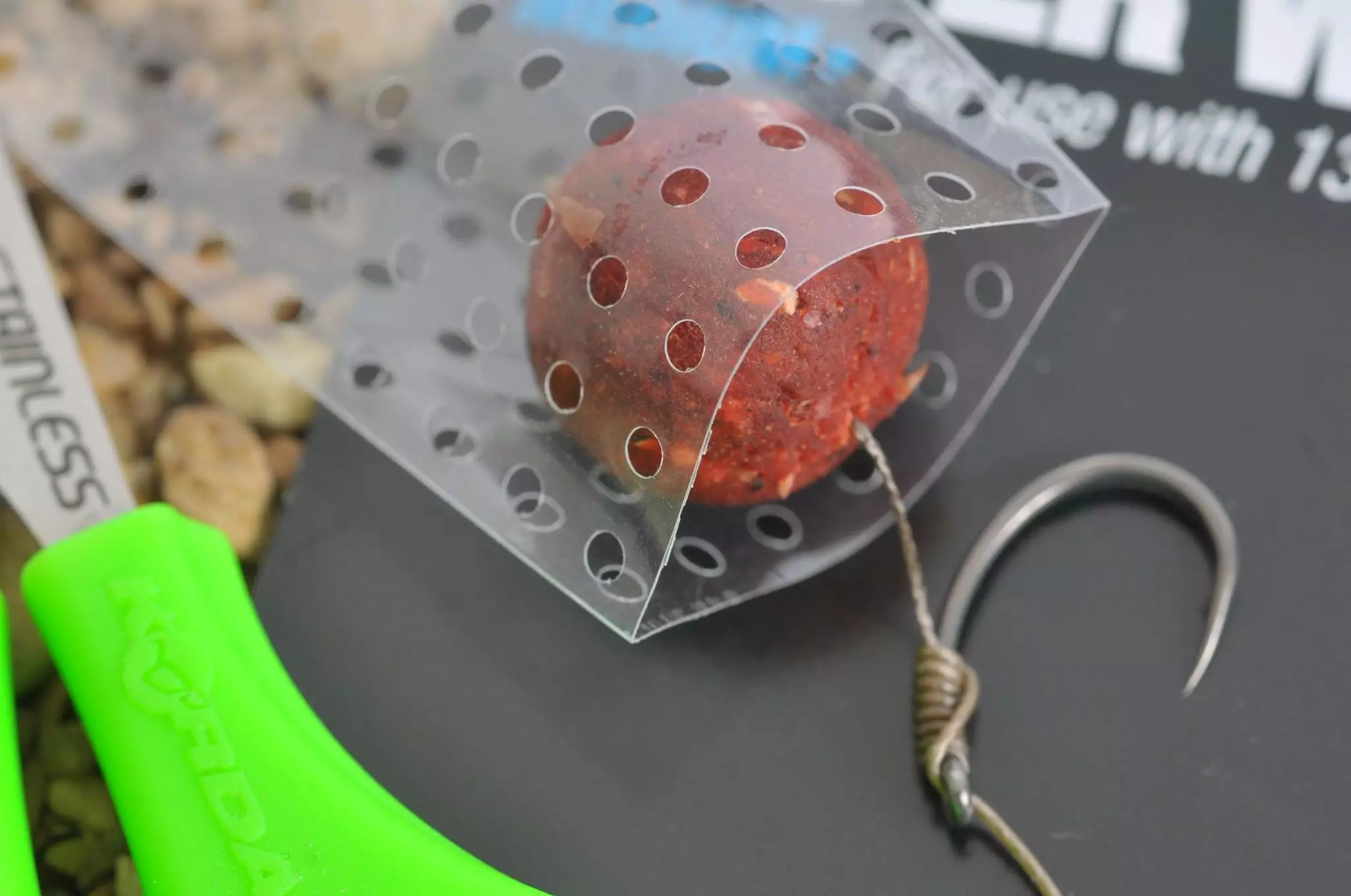 Korda Super Wrap, developed to prevent crayfish and other nuisance species damaging and stealing your hook baits. Simply slide your hook bait into the desired length of Super Wrap tube and shrink it down over a steaming kettle. You can then repeat, placing the second length of tubing at 90 degrees to the first. Using an Extenda stop will ensure your hook bait cannot be removed from the hair.