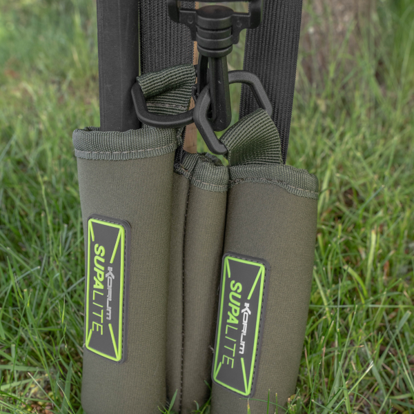 Supa-Lite rod savers offer simple easy protection for one, or a pair of broken down rods in transit. With two thick neoprene padded socks at either end and an elasticated strap you can adjust to fit multiple rod lengths. There are also two additional neoprene rod wraps spaced along the strap to give you a bit more stability. Two D loops at either end allow you to add your own carrying strap, or clip to other products in the rod saver range.