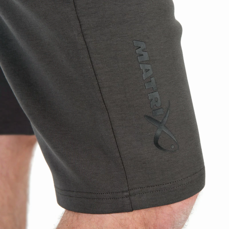 Smart grey jogger shorts from the Matrix black edition clothing range. Manufactured from a dark grey heavy duty material with black edition lime green detailing. With two zipped hand pockets, plus a hidden rear pocket with a stud fastener plus a drawstring adjustable waist. Perfect summertime bank wear on hotter days.