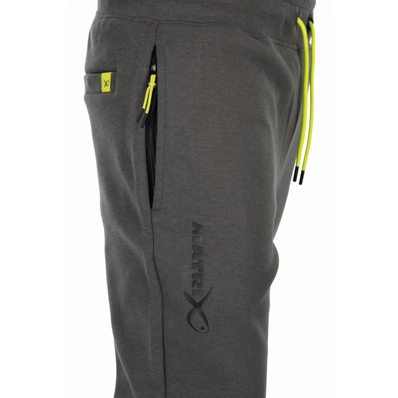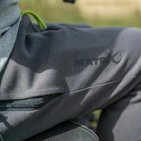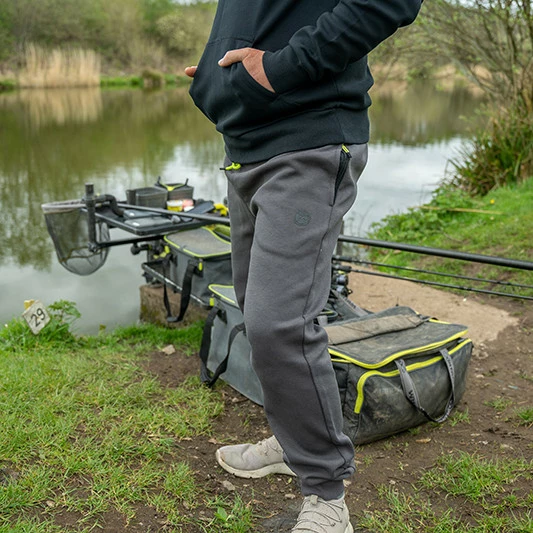 Comfy loose fitting tracksuit bottom additions to the Matrix black edition clothing range. Manufactured from a hard wearing heavy duty grey fabric, with the black edition lime green detailing. With two zipped hand pockets, plus a hidden rear pocket with a stud fastener. Ideal bankside wear offering you comfort and freedom of movement.