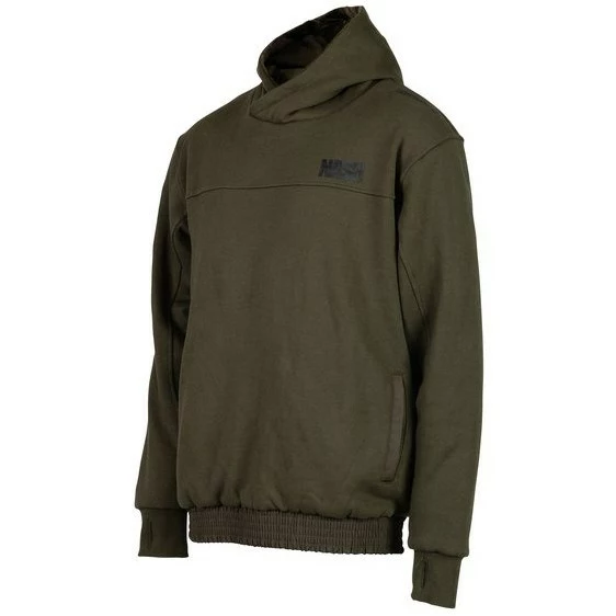 A smart extra heavyweight green hoody with subtle Nash branding and a raised crossover neck. Lined throughout with a super soft deep pile Caribou lining for next level warmth and comfort. With a cuffed waist and thumb grip sleeves for a snug fit, and twin waist hand pockets.
