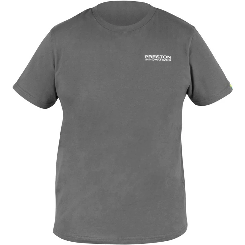A quality grey 100% cotton T-shirt from Preston with subtle branding on the chest and a large Preston logo on the back.