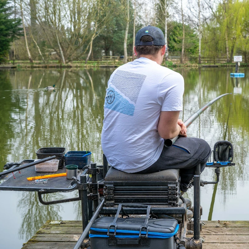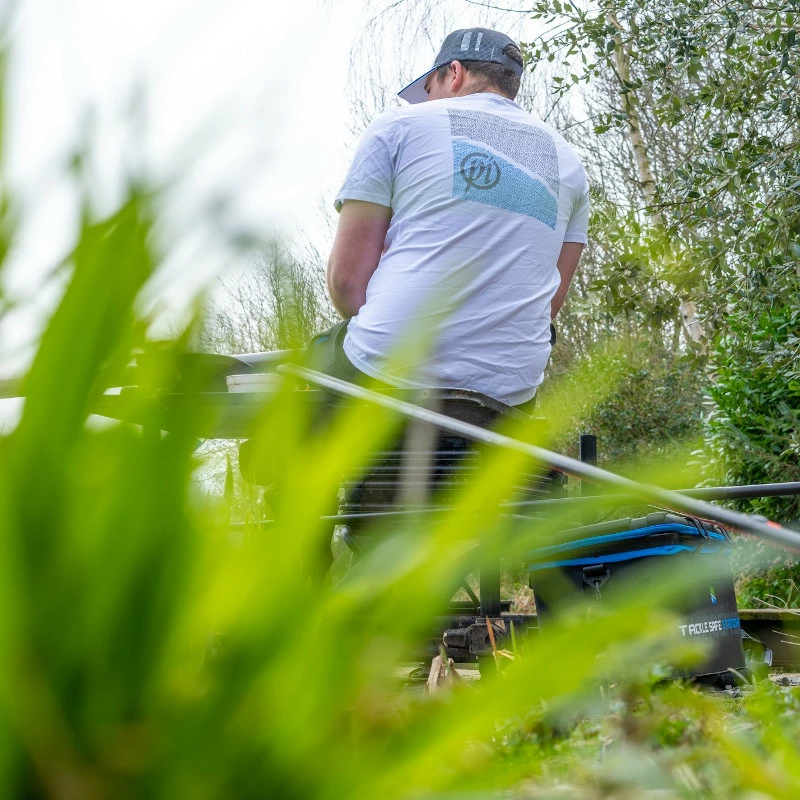 Preston Innovations White T-Shirt with subtle branding on the chest and a large Preston logo on the back.
